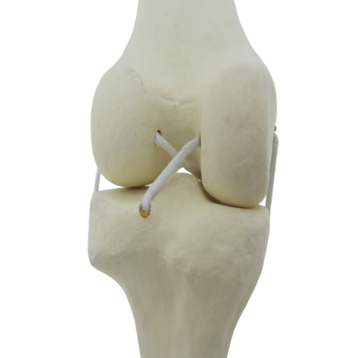 Com estrutura cortical/esponjosa e canal medular, o modelo permite perfurações, cortes e instrumentação com sensação próxima ao osso humano. Os segmentos são unidos por simulação de ligamentos colaterais (medial e lateral) e cruzados (anterior e posterior), ajudando no entendimento do comportamento articular e na orientação de acesso, posicionamento e alinhamento durante as técnicas.